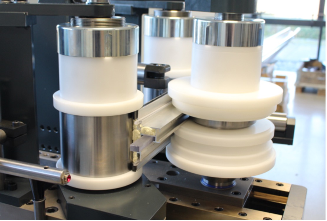 Bei der Maschine kann ein minimaler Achsabstand von nur 200mm einstellbar.  Dies ermöglicht die Fertigung von Biegekonturen mit sehr kleinen Biegeradien und sehr kurzen gerade Enden.