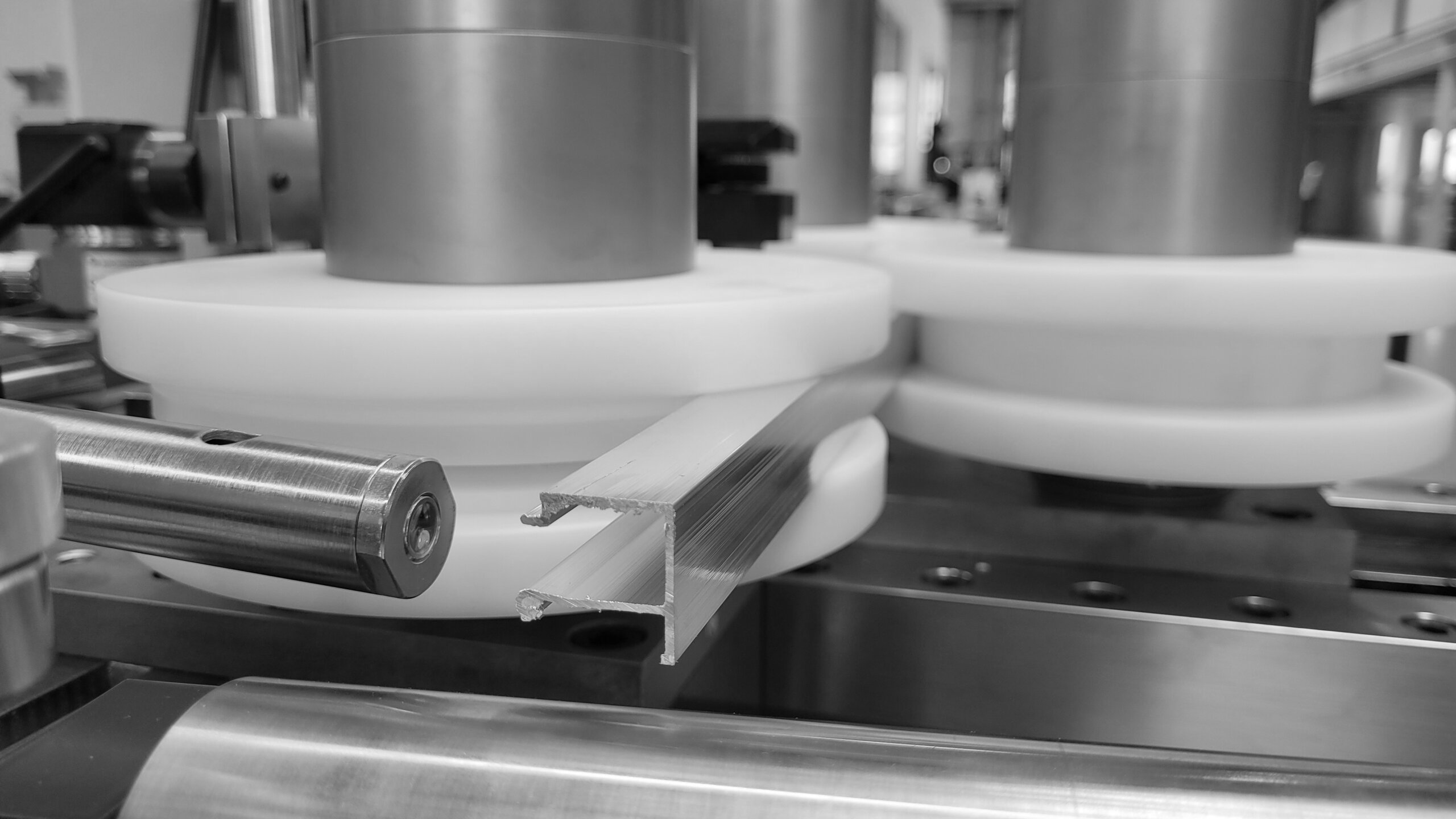 Es können glatte Walzen (ohne Riffelung) oder Walzrollen aus Kunststoff eingesetzt werden. Durch den variablen Achsabstand kann die Profilbiegemaschine optimal für das jeweils zu biegende Profil eingestellt werden. Zu hohe Presskräfte am Profil werden vermieden und es wird eine optimale Biegequalität erreicht.