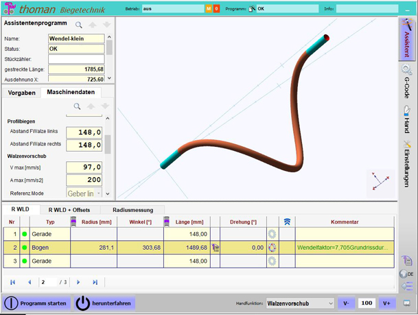 Das Messgerät ist perfekt in die Steuerungssoftware integriert. Insbesondere wenn in mehreren Walzdurchgängen gebogen wird bietet das Messsystem einen einzigartigen Komfort.