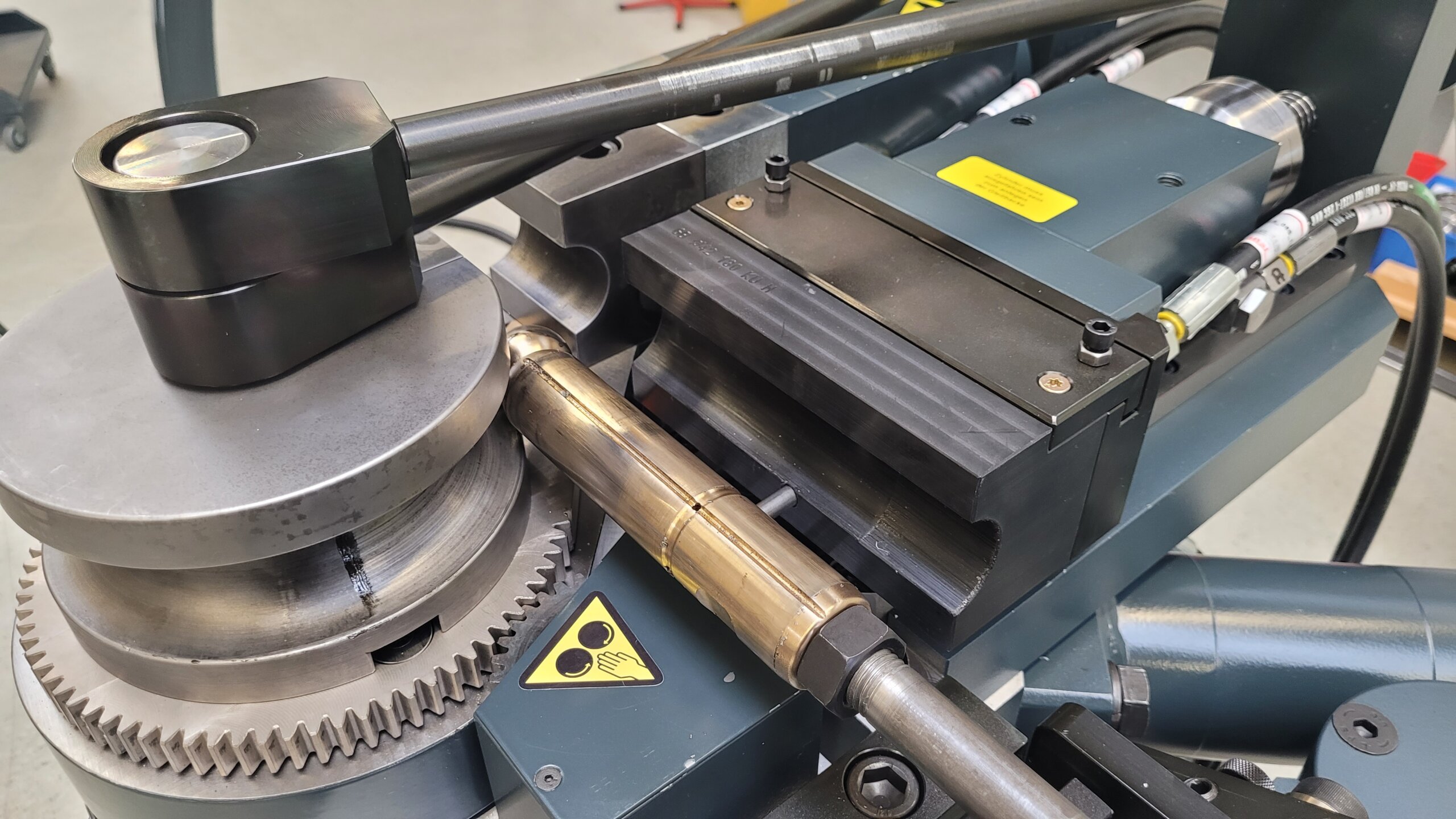 Rohrvorschub sowie Rohrdrehung arbeiten servoelektrisch geregelt. Der Hauptbiegeantrieb arbeitet hydraulisch geregelt. Kurze Positionierzeiten bei gleichzeitig höchster Präzision sind stets gewährleistet. Spannfunktionen sind hydraulisch gesteuert. Das hybride Konzept vereint die Vorteile elektrischer und hydraulischer Antriebstechnik.