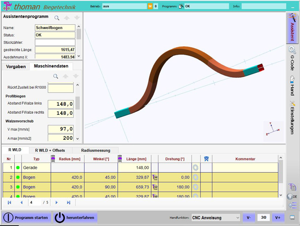 Steuerungssoftware für Profilbiegemaschinen (CNCS)